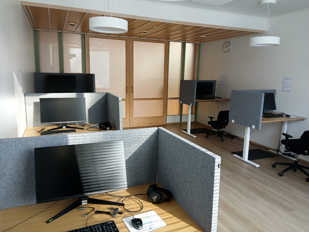 Joensuun kaupungin etätyö­pis­teen voi varata maksutta yksit­täi­siksi tunneiksi tai yksit­täi­siksi kokonai­siksi työpäi­viksi kerral­laan. Työpis­tettä voi käyttää 1 henkilö kerrallaan.